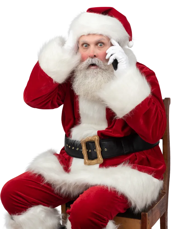 He’s checked the peg by the sleigh garage, his coat pockets, the sleigh itself (fresh from The Sleigh Shine!), even under the love seat. All he’s found are a few curious clues — a biscotti crumb, a sparkling crystal, and an empty mug of hot chocolate.